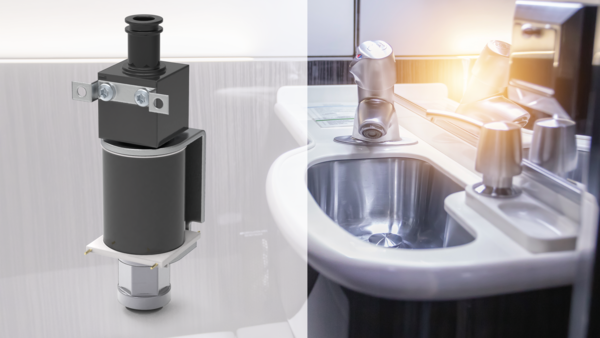 Kendrion develops electromagnetic switching and proportional valves according to customer specifications in order to optimize non-contact actuation in the entire lavatory area. The Kendrion water valve concept specifically supports pressurized water systems by allowing remaining line air to escape from the valve after the system has been drained and refilled until a continuous flow of water is assured. Unpleasant pressure surge effects with uncontrolled splash water are thus avoided.