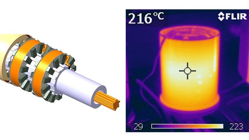 RIGHT: Thermographic image of an inductively heated roller (©Kendrion)