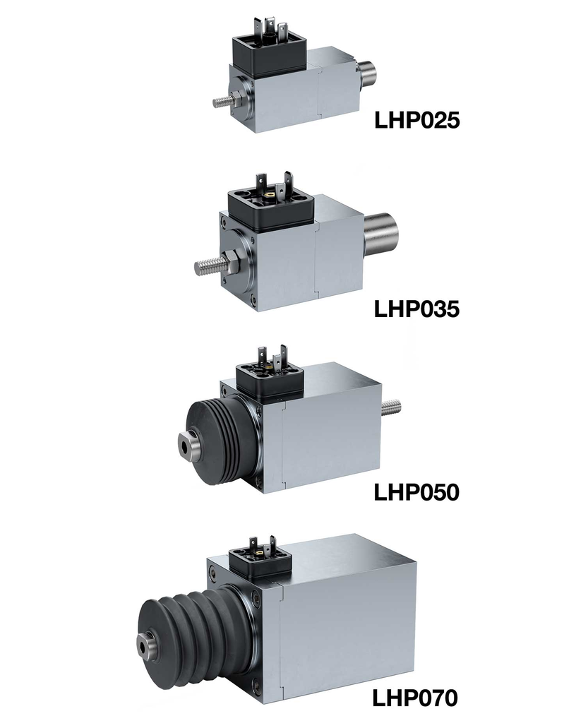 The LHP series is now available in four new sizes. Thanks to the modular design of the LHP high-power solenoids, numerous configurations can be realized with the same basic solenoid. This comprises different strokes, power, and voltage variants. Furthermore, the solenoids can be equipped with increased IP protection, different connection technology, optional return spring, and other attachments.